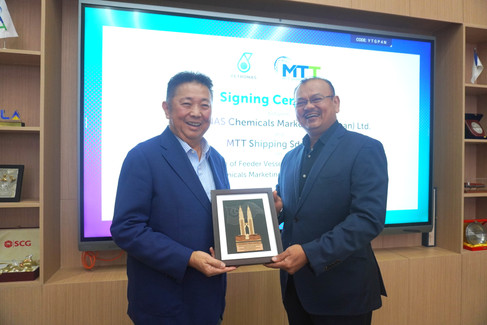 MTT Shipping Sdn. Bhd. and PETRONAS Chemicals Marketing (Labuan) Ltd. (PCML), the marketing arm of PETRONAS Chemicals Group Berhad, have renewed our long-standing collaboration for the provision of feeder vessel and barge services, marking another key milestone in our partnership that first began in 2019.